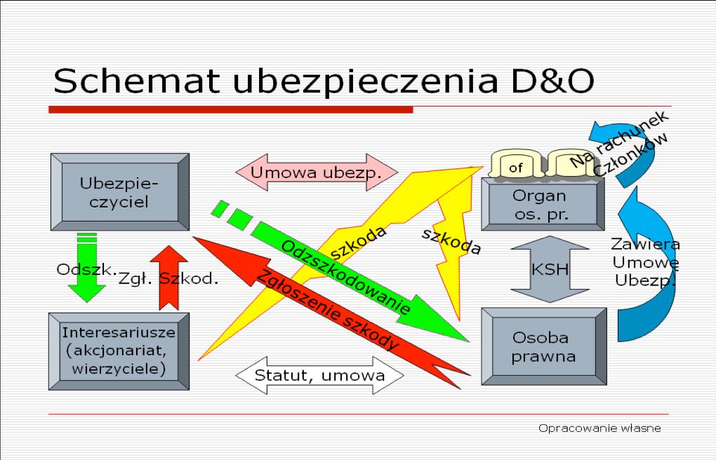 W ubezpieczeniu D&O następuje połączenie odpowiedzialności cywilnej z umową na cudzy rachunek. Skutkiem tego osoba prawna będąca ubezpieczającym jest jednocześnie poszkodowanym, zaś ubezpieczony członek organu jest jednocześnie sprawcą deliktu. Skutek tego jest taki, że ubezpieczenie to jest traktowane jak ubezpieczenie własne (a nie odpowiedzialności cywilnej). Podobnie jak to się dzieje w przypadku zawarcia ubezpieczenia mienia, czy zdrowia (płacę więc jeżeli cos się z nim dzieje, to zwyczajnie korzystam z polisy). Tyle że w D&O mamy do czynienia z odpowiedzialnością cywilną deliktową. Ta musi więc najpierw powstać, czyli muszą zaistnieć przesłanki, tj. szkoda, wina i związek przyczynowo skutkowy, a dopiero później subsydiarnie (pomocniczo) powstaje ochrona ubezpieczeniowa. Niemniej sposób rozumowania pt. płacę wiec jak coś się dzieję to dostaje odszkodowanie jest powszechny (ubezpieczenie D&O traktuje się jak podręczny skarbczyk).
